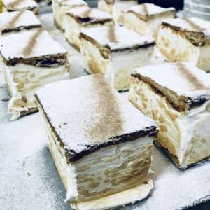 En el apartado de postres y pastas existe una excelente repostería en la que las milhojas y los cordiales son el punto fuerte.